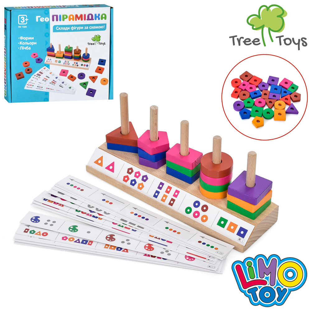 Дерев'яна іграшка Пірамідка MD 1584 Склади фігури за схемою, навч(форми, кол,лічба)в кор-ці21-18,5см