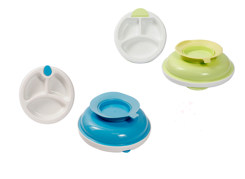 Кришечка зі спеціальним відсіком для ложки допоможе зберегти тепло їжі і захистить її від випадкового сміття. Ложка округлої форми безпечна для дитини. За допомогою присоски тарілка кріпиться до поверхні столу, завдяки якій вона не перевертається і не ковзає.
