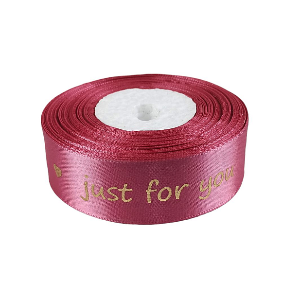 Атласна стрічка яскраво - рожева "Just for you" 2,5см х 18м