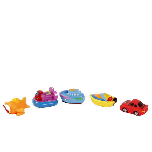 Призначені для дітей віком від 6 місяців.Яскраві іграшки у вигляді різноманітних спеціалізованих автомобілів для веселого купання.