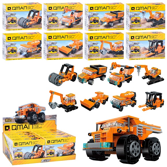 Конструктор Qman 42204 будтехніка, від 46 дет., 8в1(самоскид),8 видів,8шт.в диспл.,кор.,38-13,5-19см