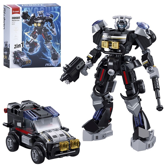 Опис Конструктор SLUBAN M38-B1316 2в1 (робот, машина), поліція, фігурка, 247 дет., кор., 22-23,5-7 см.