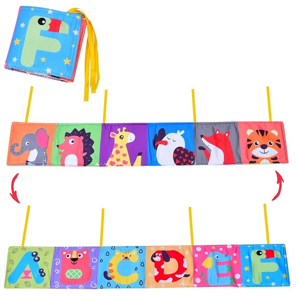 Опис Підвіска 059-2 на ліжко,зав'язки,шуршить,пискавка,двостороння(тварини, англ.букви),кул.,15-14,5-4см.