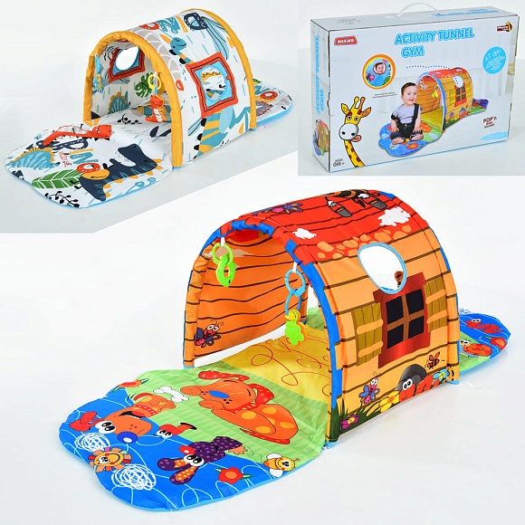 Опис Килимок для немовляти 023-62-62d 2 дуги+тунель, м'які підвіски 4 шт., 2 види, кор., 57-38-14 см.