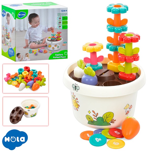 Опис Гра he795800 сортер, 5 ігор, фігурки (овочі, квіти), кор., 18-18-12 см.
