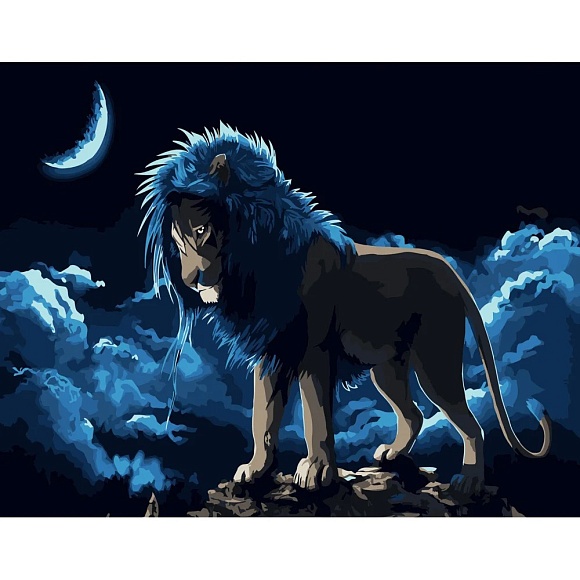 Опис Картина за номерами Strateg ПРЕМІУМ Лев під місяцем розміром 40х50 см (DY197)