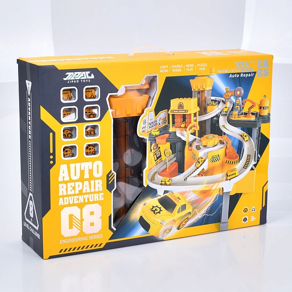 Трек JP588-13 СТО/автосервіс, ліфт,рух. деталі,машинки 8шт.,муз.,світло, бат.,кор.,57,5-41,5-14,5см.