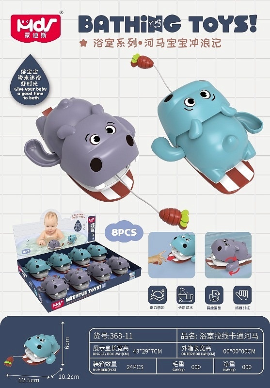 Водоплавна іграшка 368-11 заводна, бегемот, 8 шт. (2 кольори) в диспл., 43-29-7см.