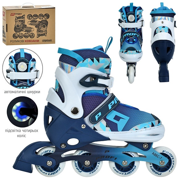 Ролики A4156-L-BL (39-42) розсувні,шнурівка+бакля,алюм.рама,ABEC-7,колеса ПУ70мм,світло,зібрані,сині