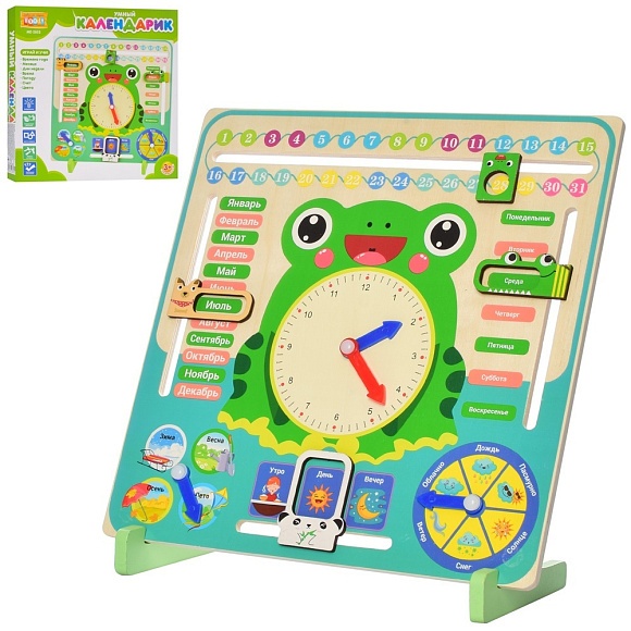 Опис Дерев'яна іграшка Годинник md 2852 календар, погода, рос., кор., 30,5-30,5-3см.