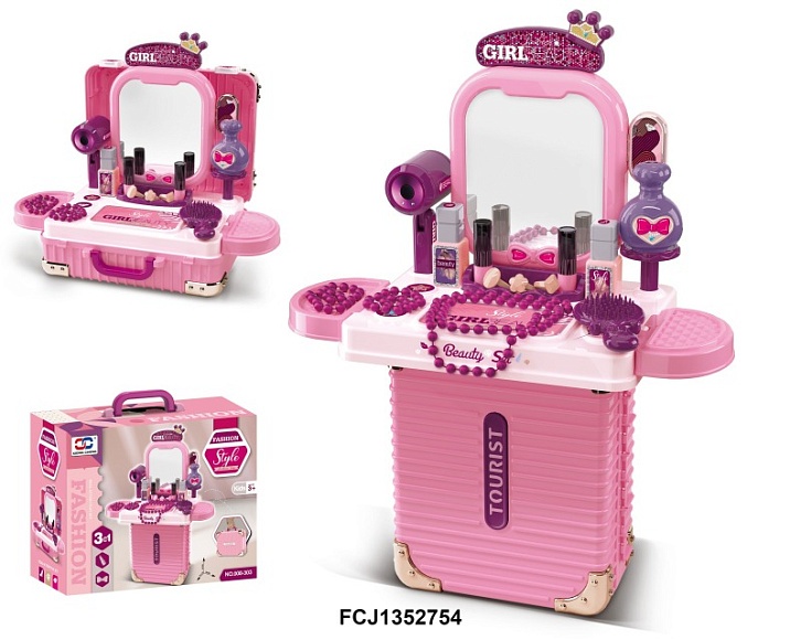 Набір аксесуарів 2501-3 2в1 (валіза, трюмо), фен, гребінець, флакони, каблучки, кор., 21,5-19-13 см.