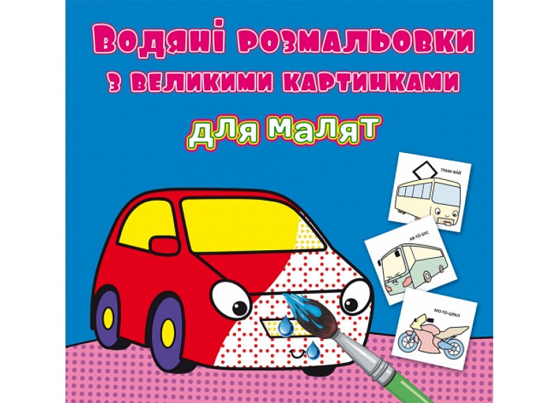 Книга "Водяні розмальовки з великими картинками для малят. Машинка"