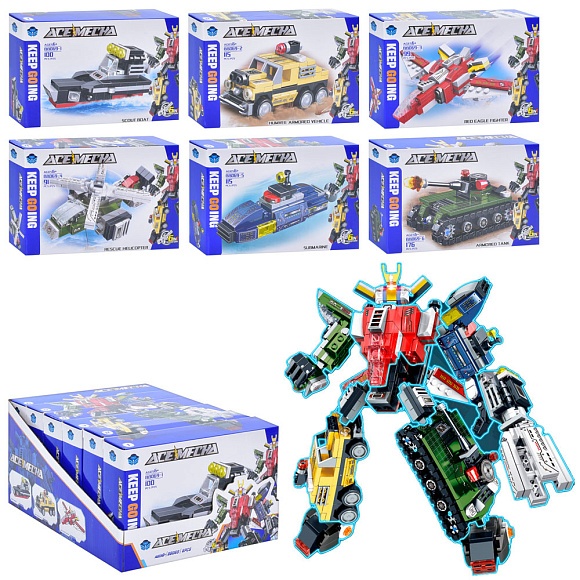 Опис Конструктор BB069 військова техніка, від 91 дет., 6 в 1, 6 видів, 6шт.в диспл., 28-23-14 см.