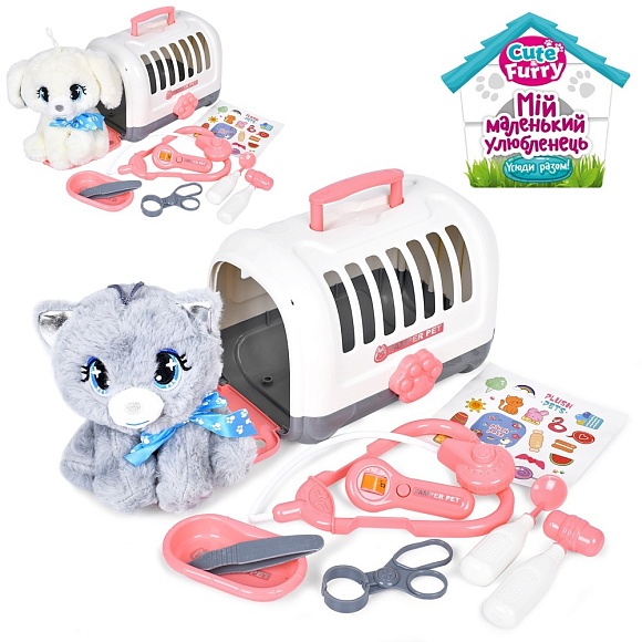 Тварина в переносці 939-50A набір ветеринара,тварина-м'яка іграшка,плюш,наліпки,2види,кул.,22-16-16с