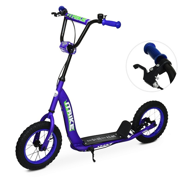 Самокат SR 2-043-1-BL1 дорослий, сталь, 2 кол.-гума 12д, підніжка 28-11см., ручне гальмо, синій.