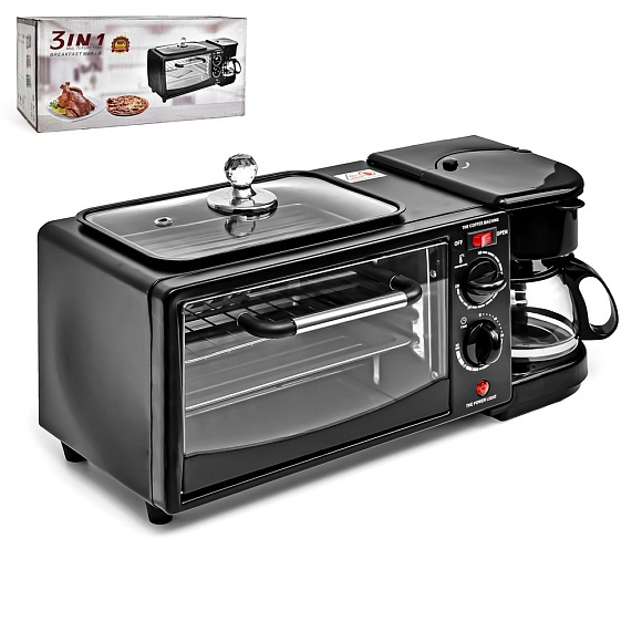 Опис Настільна електрична піч для кухні з кавоваркою та сковорідкою 3в1 r30931