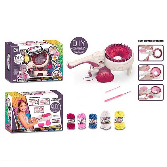 Опис Набір для творчості 898 набір для в'язання,в'язальна машинка(механічна),нитки/пряжа 5кольорів,гачки