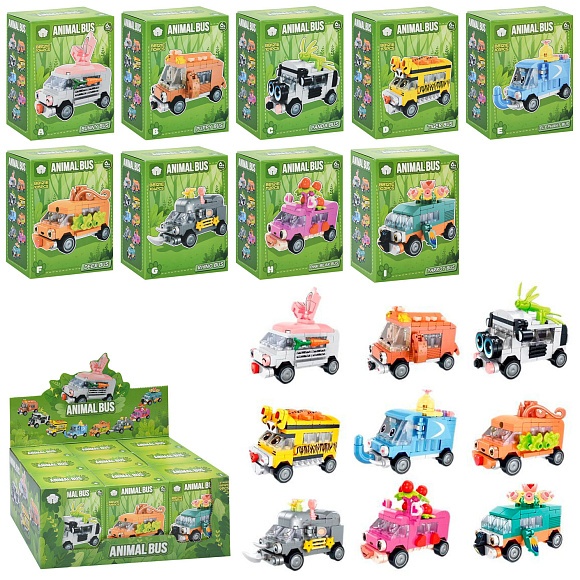 Опис Конструктор bb121e автобус, від 101дет, 9 видів, кор., 9 шт. в диспл., 27,5-12,5-18,5 см.
