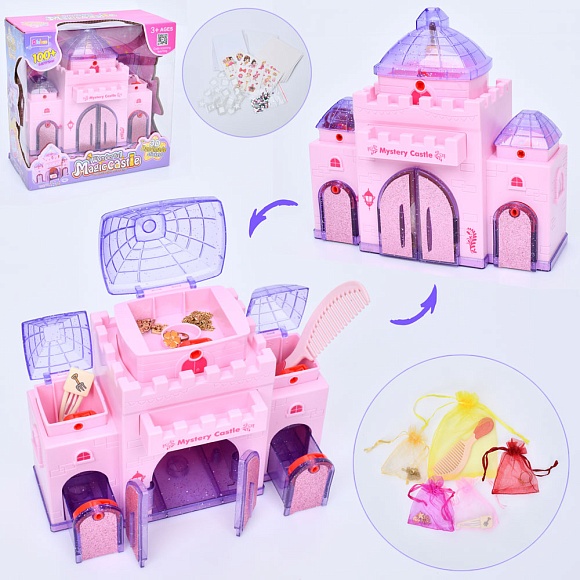 Опис Набір для творчості 6606 замок-сюрприз, ключі, аксесуари, наліпки, стрази, кор., 23-23,5-11 см.