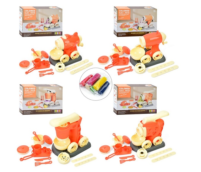 Пластилін MK 5466 6 кольорів(стіках), апарат-прес, посуд, інструменти, 4 види, кор., 29-21-9,5 см.