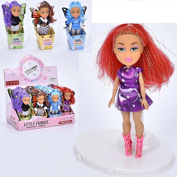 Опис Лялька lk1436a-10 фея(крила), 4 види, кор., 20 шт. в диспл., 28,5-17,5-18,5 см.