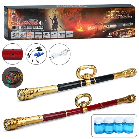 Опис Мильні бульбашки 456-29A меч, акум., USB, запаска 4 шт., 2 кольори, муз., світло, кор., 55-13,5-7 см