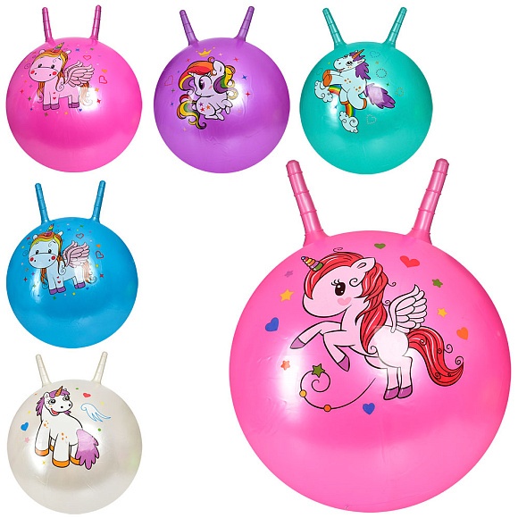 Опис М'яч для фітнесу MS 3397 з ріжками, 55см., 400г., 6видів/6кольорів, кор., 19-14-4см.
