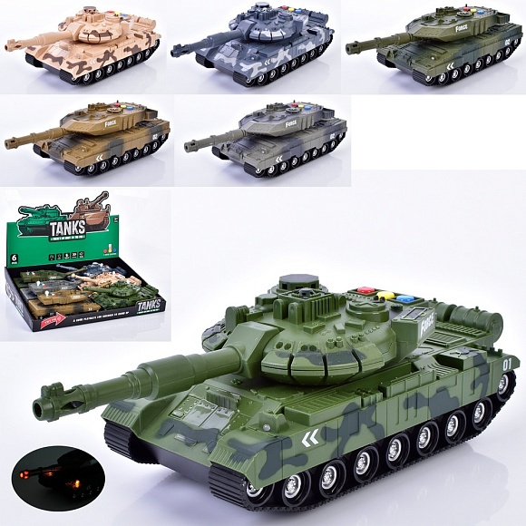 Опис Танк 8805a-1-2 1:16, кабіна оберт./тріскачка,2види по 3кольори,муз.,світло,бат.,6шт.в диспл.,55,5-39
