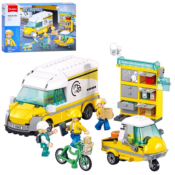 Опис Конструктор SLUBAN M38-B1290 міська серія, спецтехніка, машина,трицикл,поштомат,фігурки,255дет.,кор.