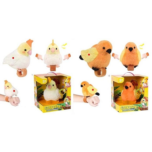 Тварина 933-144-145E пташка, повторюшка, браслет, плюш, 2 види, муз., бат., кор., 17,5-19-17 см.