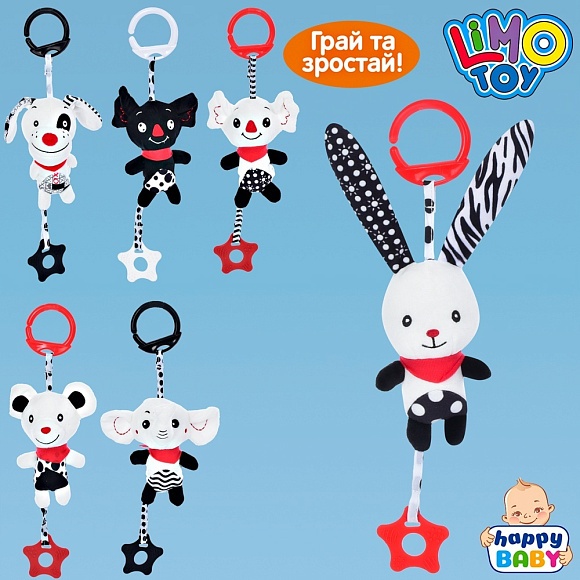 Опис Підвіска м'яка LB2022041301 тваринки, гризунок, брязкальце, 6 видів, кул., 15-16-5 см.