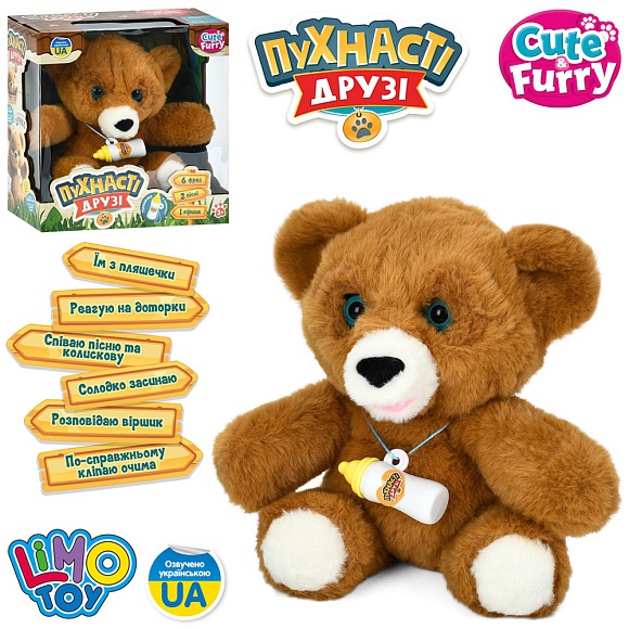 Опис Тварина m 6215 i ua ведмедик,24см,муз.-звук(укр),пісні,віршик,сенс.,спить,реагує,плюш,на бат.,в кор.