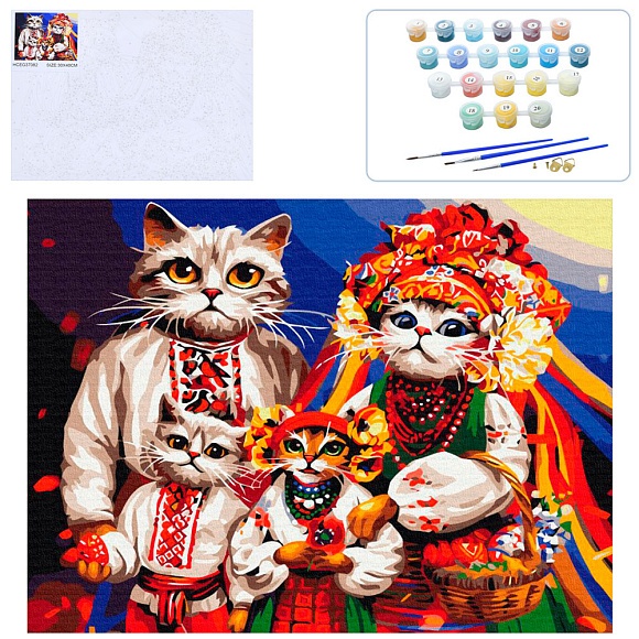Опис Набір для творчості МК 5349 картина за номерами, Українська котяча родина, кул., 30-40-2 см.
