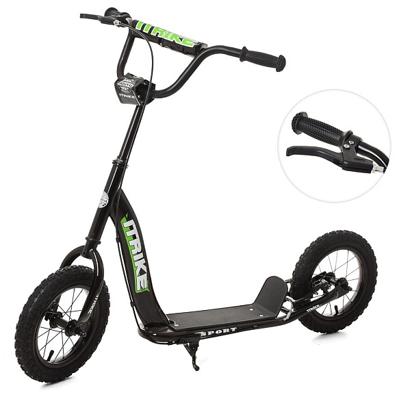 Самокат SR 2-043-1-B підлітковий, 2 кол.-гума 12д, кермо, до 60 кг, підніжка, ручні гальма, чорний.