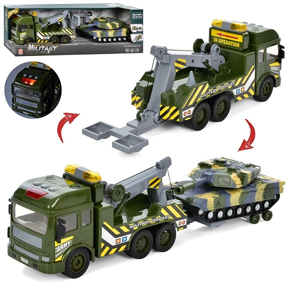 Опис Трейлер RJ3367 інерц., танк, муз., світло, гумові колеса, кор., 58-17,5-12 см.