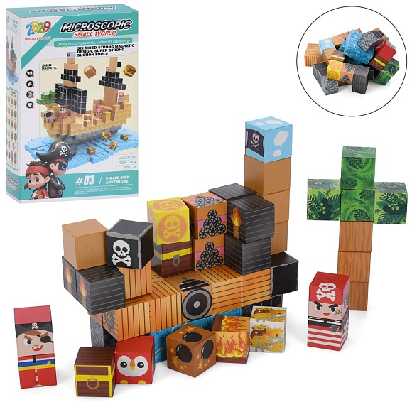 Опис Конструктор rdf-1004 магнітний, піратський корабель, 54дет, в кор., 15-25-7см