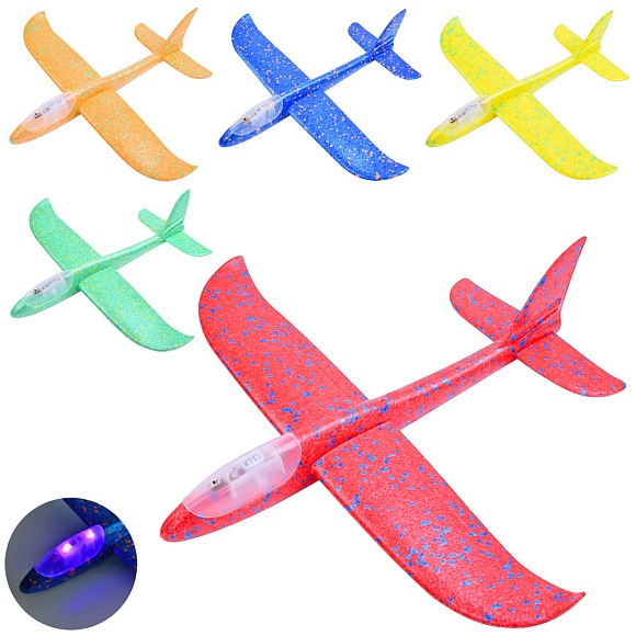 Літак FG231009002M пінопласт, мікс кольорів, світло, бат. (табл.), кул., 13-47-4,5 см.