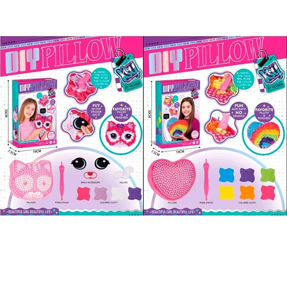 Опис Набір для творчості KSY971-73 тканинна мозаїка,подушка-серце,кольорова тканина,2 види,кор.,19-30-8см