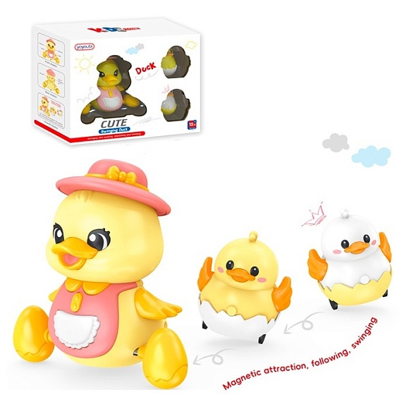 Музична іграшка 223 качка(їздить,муз.,світло,рег. гучності),каченята 2шт.,магнитні,акум.,USB,кор.