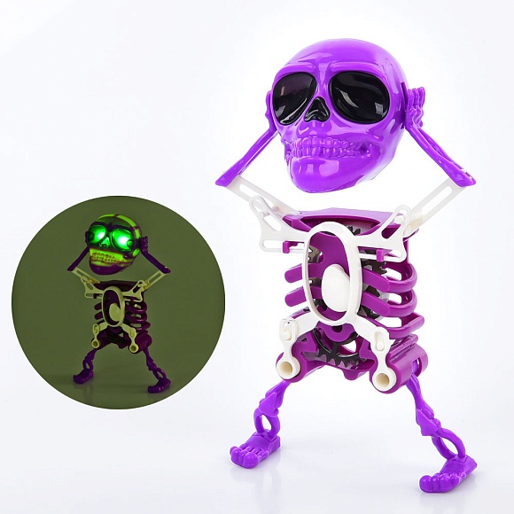 Опис Робот 0822a-2 скелет, заводний, рухливий, муз., світло, бат.(таб.), кул., 13-20-7см.