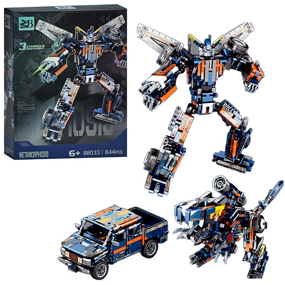 Конструктор 88033A 3в1(робот, динозавр, машина), 844 дет., кор., 29,5-40,5-9,5 см.