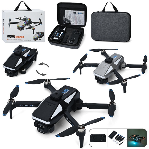 Опис Квадрокоптер S5 радіокер.,2,4G,акум.,камера,складний,Wi-Fi,USB,запасні лопасті,2кольори,світло,чохол