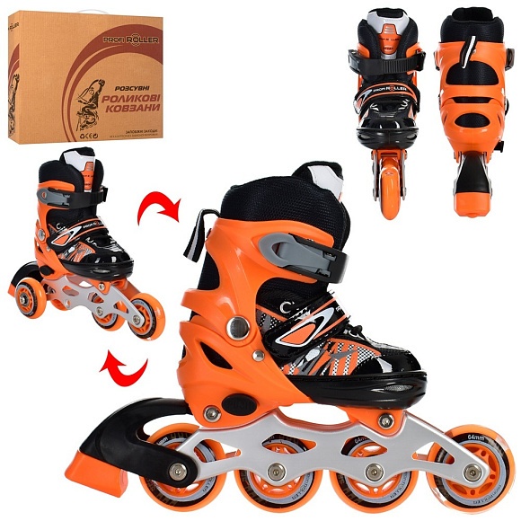 Ролики A4156-L-OR (39-42)розсувні,шнурівка+бакля,алюм.рама,ABEC-7,колеса ПУ70мм,світло,зібрані,помар