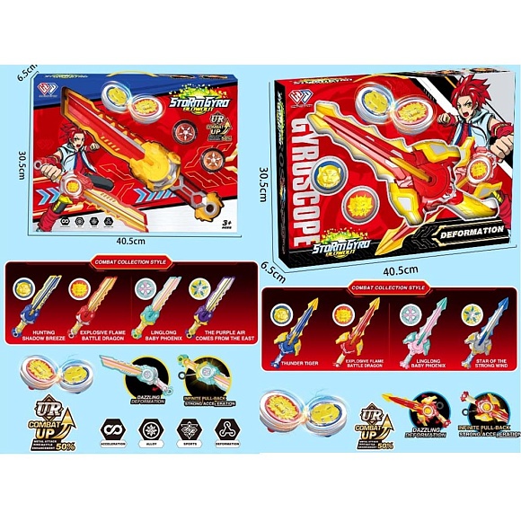 Опис Гра HZY777-21A-22A дзига 2шт.(мет.+пласт.),на запуску (меч),2види/мікс видів,світло,бат.(табл.),кор.
