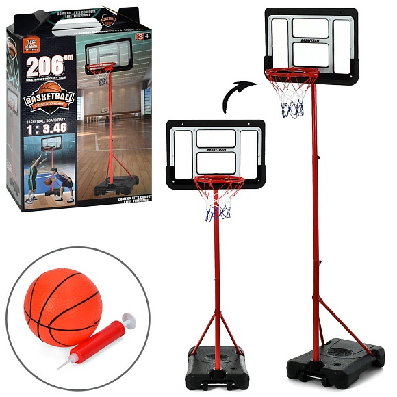 Опис Баскетбольне кільце mr 1529 на стійці(мет.),щит(плас.),кільце(мет.),сітка,м'яч,насос,кор.,39-56,5-14