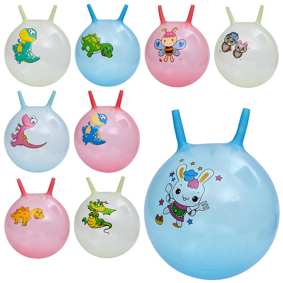 Опис М'яч для фітнесу ms 4859 с ріжками, принт-тварина, 350г, мікс видів/4 кольори, кул.