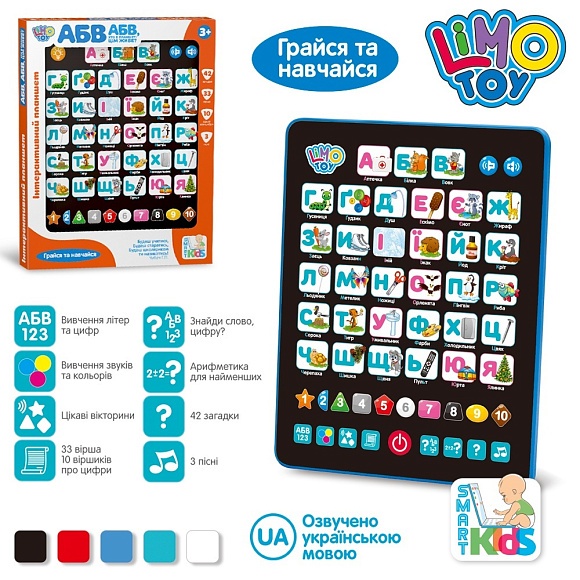 Опис Планшет SK 0019 навч., загадки, цифри, вірші, муз. (укр.), бат., кор., 19,5-25-2 см.