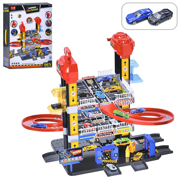 Опис Гараж a333-241a 3 поверхи, машинки 2 шт., 2 ліфти(ліфт(механіч.),ліфт-муз.,світло),кор.,41-57-15,5см