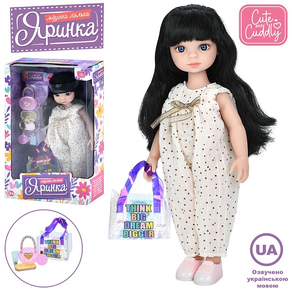 Опис Лялька M 6071 I UA Яринка, 5 пісень, сумка, аксесуари, муз. (укр.), бат. (табл.), кор., 20-33-8,5 см