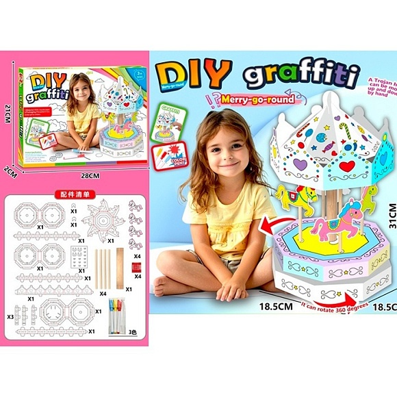Набір для творчості 423 карусель, зроби сам, розмальовка, картон, фломастери 3шт, кор., 28-21-2см.